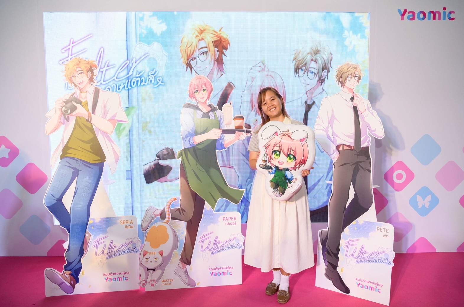 ภายในงานจะได้พบกับกิจกรรมสนุกๆ “Y Matching 100%” เกมจับคู่สุดมันเพื่อรับโฟโต้การ์ดคอลเล็กชันพิเศษ พร้อมทั้งมีแจกไอศกรีมซอฟต์เสิร์ฟ เย็นฉ่ำฟินใจให้กับแฟนๆ Yaomic ที่แวะเวียนมาไม่ขาดสาย นอกจากนี้ยังฟินกันขึ้นไปอีกเมื่อมีหนุ่มหล่อ Katto และ “Ryou” ที่มาคอสในบูธ ‘เปเปอร์’ และ ‘ซีเปีย’ จากเรื่อง “Filter กระดาษแต้มสี” รวมถึง “CMYK” และ “MihaiYang”  ที่มาในลุค ‘ข้าวจ้าว’ และ ‘เหนือฟ้า’ จากเรื่อง “Battery Love 100%” ที่มาร่วมแจกซอฟเสิร์ฟ และให้แฟนๆ ได้ถ่ายภาพอย่างใกล้ชิดกันอีกด้วย