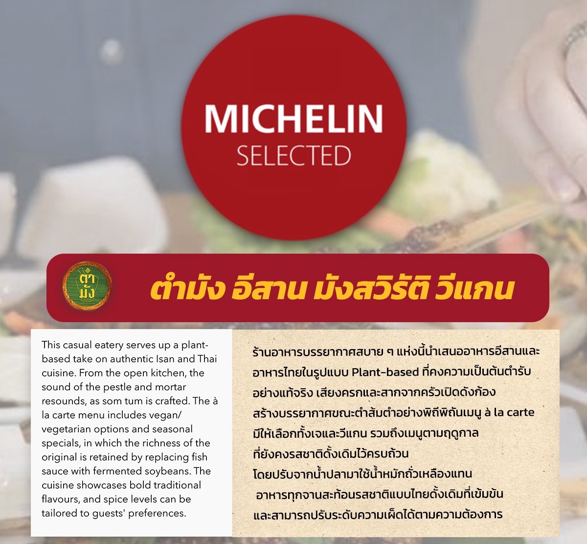 | ตำมัง | Michelin Selected | 2025 | วีแกน, เจ |