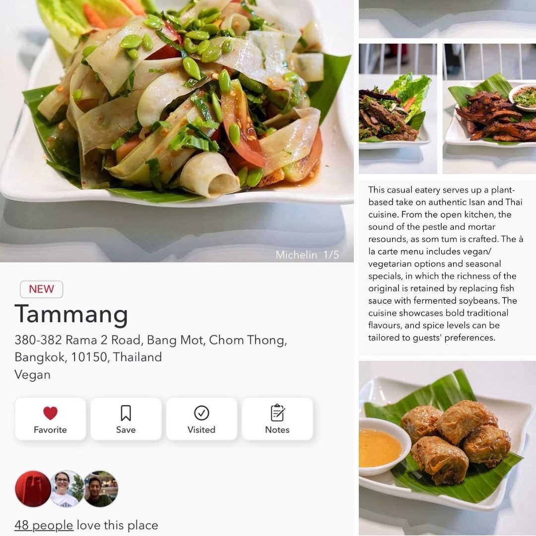 ร้านอาหารวีแกนแห่งแรกที่ได้รับการระบุอย่างชัดเจนในคู่มือมิชลินไกด์ประเทศไทยคือร้าน “ตำมัง อีสาน เจ มังสวิรัติ วีแกน” ซึ่งปรากฎใน คู่มือมิชลิน ไกด์ ประเทศไทย ในช่วงกลางปี 2025 ร้านตำมังก่อตั้งโดยคุณกิตติโชค วีระเตชะ, คุณกรพิพัฒน์ การุณยเลิศ และคุณพีรญา การุณยเลิศ ปัจจุบันร้านตำมังมีอยู่สองสาขา คือ สาขาพระรามสองและสาขาสาทร-เจริญราษฎร์ ร้านตำมังนำเสนอเมนูแบบไร้เนื้อสัตว์ในสไตล์อีสานแบบดั้งเดิม ปราศจากผลิตภัณฑ์จากนมและไข่ ในส่วนของเนื้อสัตว์จากพืชของร้านตำมัง เป็นเนื้อจากพืชแบบโฮมเมด ผลิตเองโดยเน้นใช้พืชและส่วนประกอบจากธรรมชาติ ไม่ผ่านการแปรรูปทางอุตสาหกรรมหลายขั้นตอน (No Ultra-processed) และที่สำคัญไปกว่านั้น ร้านตำมังยังใส่ใจถึงเรื่องคุณภาพของวัตถุดิบท้องถิ่นจากธรรมชาติ โดยใช้สมุนไพรท้องถิ่นที่ปลูกเองโดยตรง จากสวนผักตำมัง ออร์แกนิก ปลอดสารจากยาฆ่าแมลง ปลอดสารพิษ