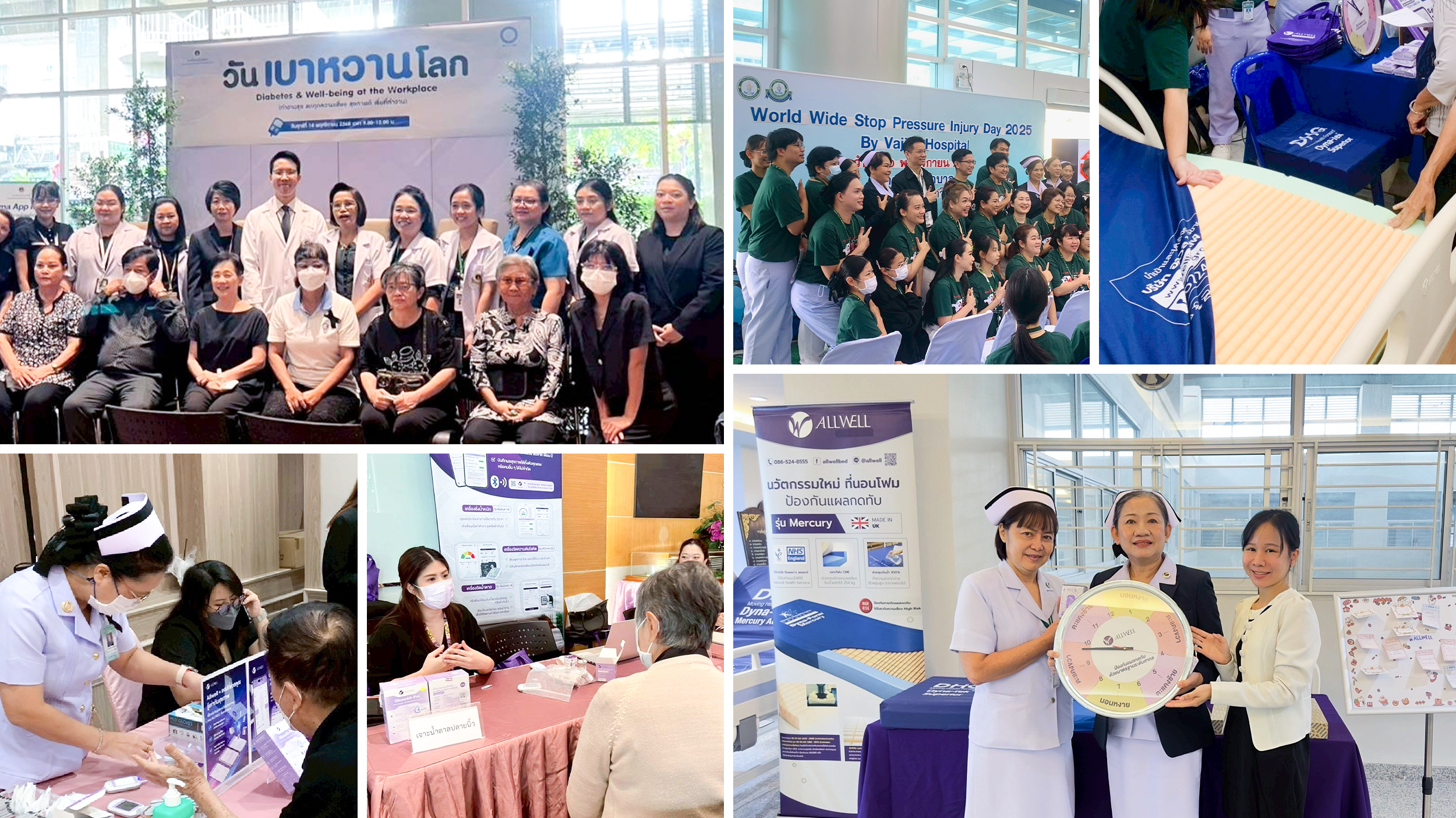 กิจกรรม “วันเบาหวานโลก (World Diabetes Day)” และ “วันแผลกดทับโลก (World Pressure Injury Prevention Day)” ถือเป็นกิจกรรมสำคัญที่โรงพยาบาลทั่วประเทศจัดขึ้นเป็นประจำทุกปี เพื่อตอบรับสถานการณ์ด้านสุขภาพของคนไทย เนื่องจากโรคเบาหวานเป็นโรคไม่ติดต่อเรื้อรังที่พบมากและมีภาวะแทรกซ้อนรุนแรงหากไม่ได้รับการดูแลอย่างต่อเนื่อง ขณะที่แผลกดทับเป็นปัญหาสำคัญที่เกิดขึ้นบ่อยในผู้ป่วยติดเตียง ผู้สูงอายุ และผู้ป่วยเรื้อรัง ซึ่งหากไม่ได้รับการป้องกันและดูแลอย่างถูกต้องตั้งแต่ระยะแรก อาจนำไปสู่ภาวะแทรกซ้อนที่กระทบต่อคุณภาพชีวิตของผู้ป่วยอย่างมาก ดังนั้น การคัดกรองกลุ่มเสี่ยง การให้ความรู้ด้านการป้องกัน และการสร้างความตระหนักรู้แก่ประชาชนจึงเป็นภารกิจสำคัญของโรงพยาบาลทั่วประเทศ