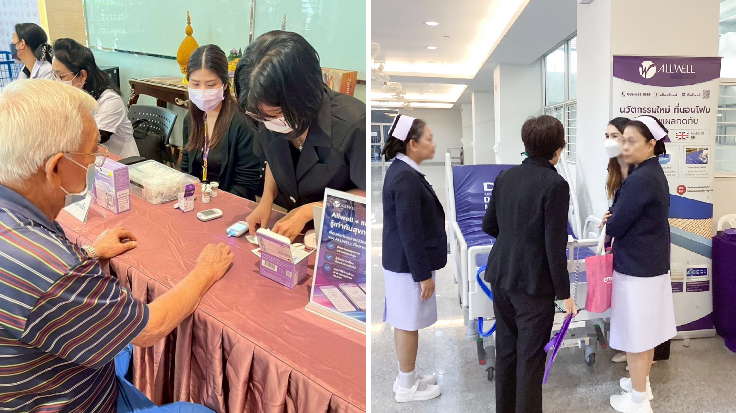 ด้วยความตระหนักในความสำคัญดังกล่าว Allwell จึงร่วมสนับสนุนกิจกรรมในหลายพื้นที่ โดยสนับสนุนอุปกรณ์ตรวจวัดสุขภาพที่ผ่านมาตรฐานสากล เพื่อช่วยให้โรงพยาบาลรองรับผู้เข้าร่วมกิจกรรมจำนวนมากได้อย่างมีประสิทธิภาพ พร้อมจัดทีมเจ้าหน้าที่ร่วมปฏิบัติงานจริงในพื้นที่ ทั้งการช่วยตรวจสุขภาพ การแนะนำวิธีใช้อุปกรณ์ และการให้คำปรึกษาด้านการดูแลสุขภาพเบื้องต้น เพื่อให้ประชาชนสามารถนำอุปกรณ์ที่มีอยู่ไปใช้ดูแลตนเองได้อย่างถูกต้องและมั่นใจ สำหรับกิจกรรมวันเบาหวานโลก Allwell ได้สนับสนุนเครื่องมือเพื่อใช้คัดกรองและประเมินภาวะแทรกซ้อนของผู้ป่วยเบาหวาน ขณะที่ในวันแผลกดทับโลก บริษัทได้จัดแสดงอุปกรณ์ดูแลผู้ป่วยติดเตียง พร้อมทีมงานคอยแนะนำการใช้งานและดูแลผู้ป่วยอย่างเหมาะสม