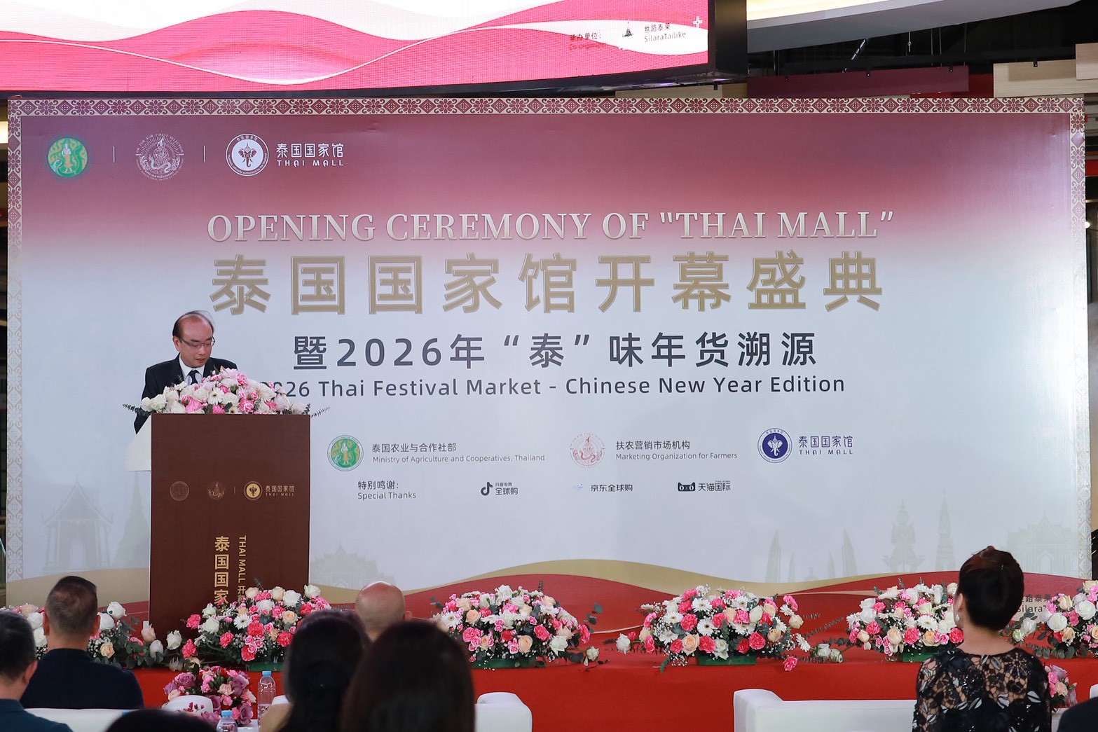 เมื่อวันที่ 18 มกราคม พิธีเปิดอย่างเป็นทางการของ Thai Mall พร้อมด้วยกิจกรรม “2026 THAI FESTIVAL MARKET – CHINESE NEW YEAR EDITION” ได้จัดขึ้นอย่างยิ่งใหญ่ ณ บริเวณ Stadium Lobby ห้างสรรพสินค้า Bravo BKK โดยถือเป็นกิจกรรมสำคัญช่วงต้นปีในด้านการค้าผลิตภัณฑ์เกษตรระหว่างไทยและจีน กิจกรรมนี้แสดงให้เห็นถึงความแข็งแกร่งของห่วงโซ่อุตสาหกรรมสินค้าเกษตรไทยตั้งแต่ต้นน้ำจนถึงปลายน้ำ พร้อมเจาะลึกมิติทางวัฒนธรรม เพื่อส่งเสริมสินค้าเกษตรที่เป็นเอกลักษณ์ของไทยให้เป็นที่รู้จักและเพิ่มมูลค่าในตลาดจีน