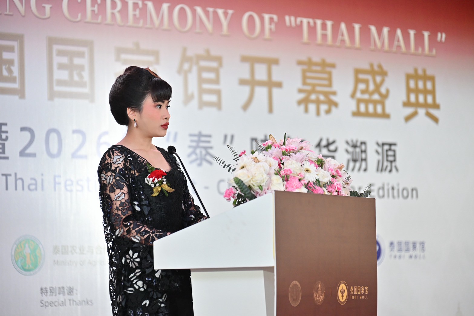 ในพิธีเปิด คุณปุณฑริกา ฉายากุล กงสุล (ฝ่ายเกษตร) ประจำสถานกงสุลใหญ่ ณ นครเซี่ยงไฮ้ ได้กล่าวว่า ความร่วมมือทางเศรษฐกิจและการค้าไทย-จีนมีความใกล้ชิดกันมากขึ้น และผู้บริโภคชาวจีนมีความต้องการสินค้าเกษตรคุณภาพสูงจากไทยอย่างต่อเนื่อง การจัดตั้ง Thai Mall จึงเกิดขึ้นเพื่อสร้างแพลตฟอร์มการจัดแสดงและจับคู่ธุรกิจ ซึ่งไม่เพียงช่วยให้ผู้บริโภคชาวจีนสามารถเข้าถึงสินค้าไทยแท้ได้สะดวกยิ่งขึ้นเท่านั้น แต่ยังช่วยสนับสนุนให้ผู้ประกอบการไทยสามารถขยายและเจาะตลาดจีนได้อย่างมั่นคง อีกทั้งยังเป็นการส่งเสริมเกษตรกรไทย รวมถึงผู้ประกอบการแปรรูปสินค้าเกษตรคุณภาพระดับกลางและขนาดย่อมของไทย ให้มีโอกาสเพิ่มมากขึ้นในการส่งออกสินค้าเกษตรคุณภาพไปยังประเทศจีน และสามารถเข้าถึงผู้บริโภคชาวจีนได้โดยตรง