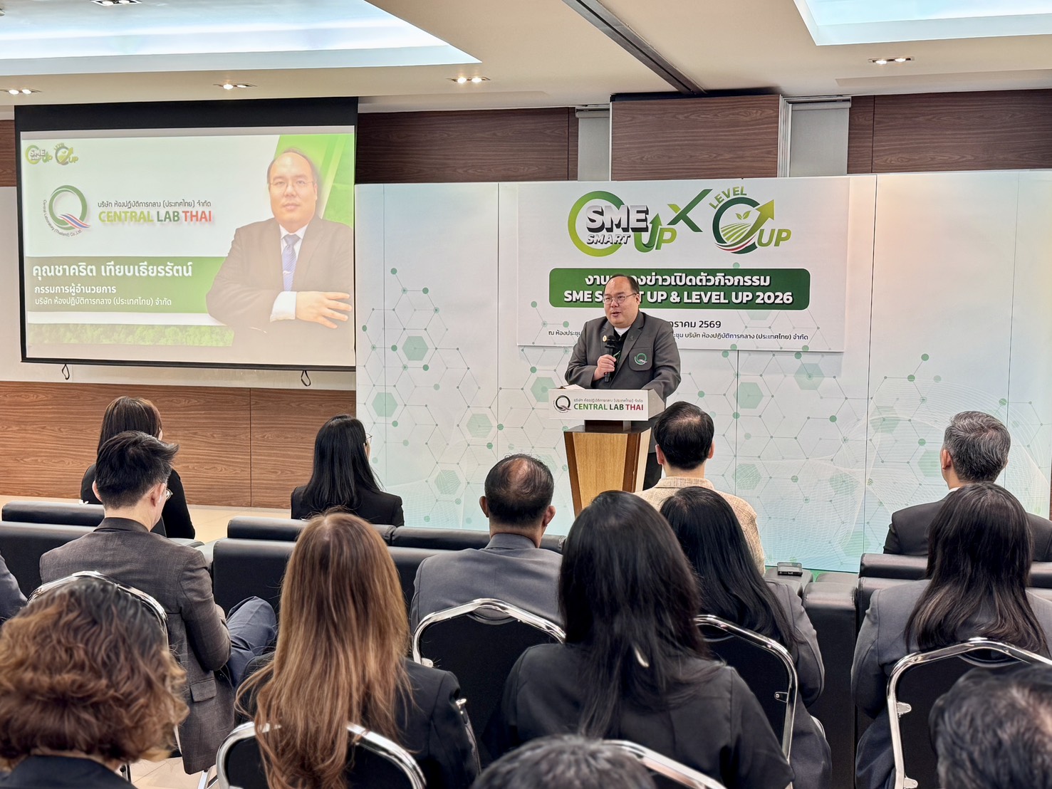 บริษัท ห้องปฏิบัติการกลาง (ประเทศไทย) จำกัด หรือ เซ็นทรัลแล็บไทย ได้จัดงานแถลงข่าวเปิดตัว 2 โครงการที่สำคัญ ได้แก่ กิจกรรม SME SMART UP 2026 ที่ยังคงต่อยอดความสำเร็จจากการดำเนินการมาต่อเนื่องตั้งแต่ปี 2567 และ กิจกรรม SME LEVEL UP 2026 Green Move by CLT ซึ่งเป็นโครงการใหม่ล่าสุดที่มุ่งยกระดับผู้ประกอบการไทยให้เติบโตอย่างยั่งยืนด้วยมาตรฐานสีเขียว ซึ่งทั้ง 2 โครงการในภาพรวมก็มีเป้าหมายเพื่อสร้างมาตรฐานสินค้าของผู้ประกอบการไทยเติบโตไปอีกระดับ และสร้างการแข่งขันในเวทีโลกอย่างยั่งยืน โดยงานแถลงข่าวจัดขึ้นเมื่อวันที่ 29 มกราคม 2569 ณ อาคารฝึกอบรมและการประชุม บริษัท ห้องปฏิบัติการกลาง (ประเทศไทย) จำกัด สำนักงานใหญ่